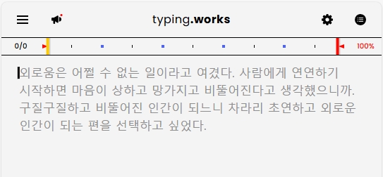 타이핑웍스(typing works)는 무료로 이용 가능한 온라인 타자 연습 플랫폼입니다. 해당 사이트에서는 타이핑 연습을 하면서 속도와 정확도를 확인할 수 있으며, 사용자가 설정한 문장이나 단락을 바탕으로 연습할 수 있는 기능을 제공합니다.
