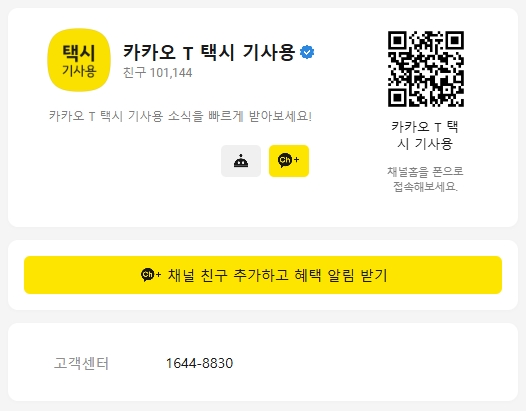 카카오T 택시 기사용 채널(카카오톡채널 - 카카오 T 택시 기사용)을 친구로 추가하여 혜택과 소식을 빠르게 받아보세요.