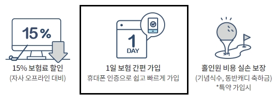 일일 홀인원 보험으로도 이용할 수 있는데요, 라운딩날 하루를 위한 1일 보험도 간편하게 가입이 가능합니다. 당일의 경우 라운딩이 시작하기 전에 가입할 수 있고, 1년~3년까지 장기간으로도 가입이 가능합니다.