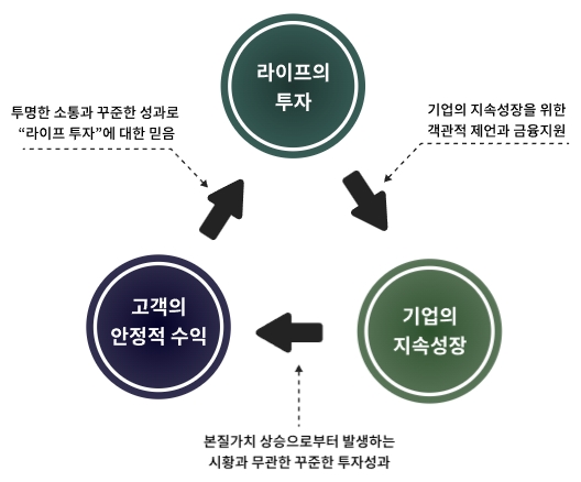 라이프 자산운용은 기업가치분석에 대한 경험과 노하우를 바탕으로 기업의 안정성, 수익성, 성장성을 균형있게 분석하여 현금흐름에 기반한 전통산업 뿐만아니라 플랫폼 및 테크놀로지 기업도 포괄하는 가치투자를 구현합니다.