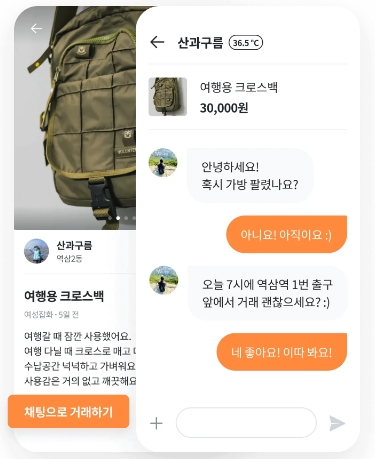 저는 실제로 당근마켓 앱을 활용하여 물건을 구매하고 판매해본적이 있습니다. 생각보다 어렵지 않기때문에 여러분들도 이용할 계획이시면 제 글을 참고해보시기 바라며, 오늘은 구매팁을 기준으로 알아보겠습니다. 마음에 드는 물건을 발견했다면 [채팅으로 거래하기] 버튼을 눌러서 판매자에게 구매의사를 밝히고, 궁금한 것들을 물어볼 수 있습니다. 당근마켓 거래방법은 크게 두가지가 있습니다.